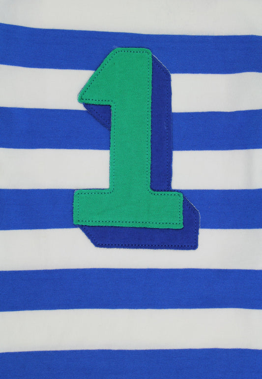 Organic Four Applique Blue Stripe Long-Sleeved T-Shirt
