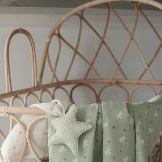 Organic Muslin Cot Bedding Set - Sage Gingham