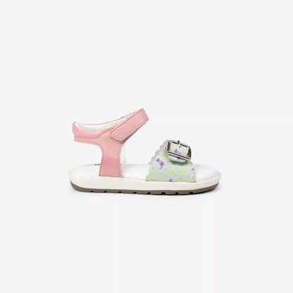 Pretty in pink! Our dinosaur print kid's sandals are available in a summery pink and mint green combo. Paired with a summer dress and hat, these shoes are lightweight, easily adjustable, and cushioned around the ankle and footbed. Sore feet are no longer a problem for little people on holiday.