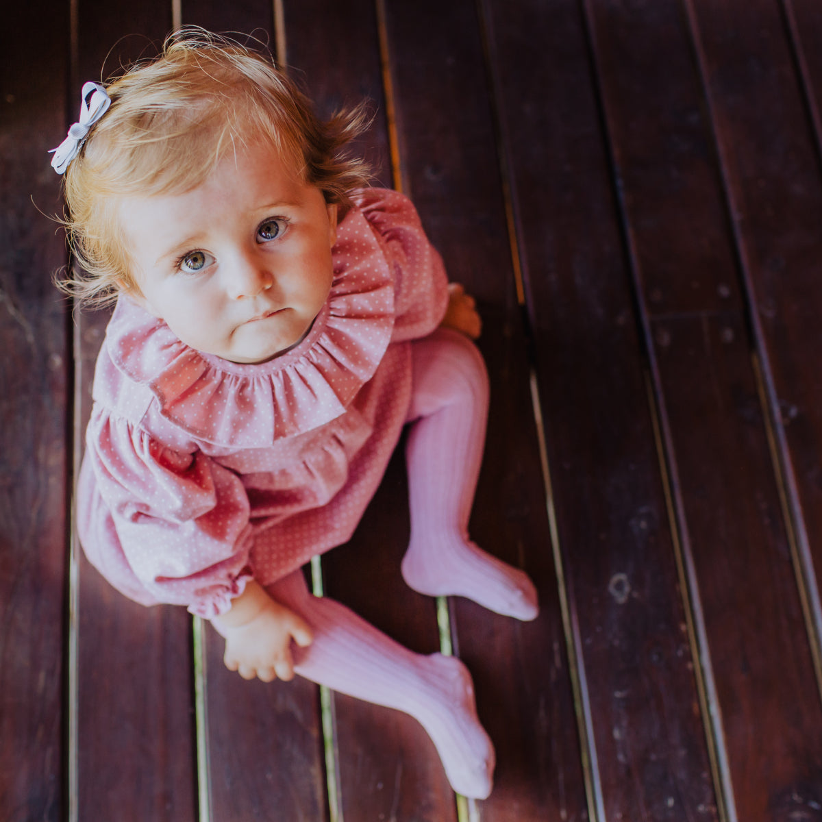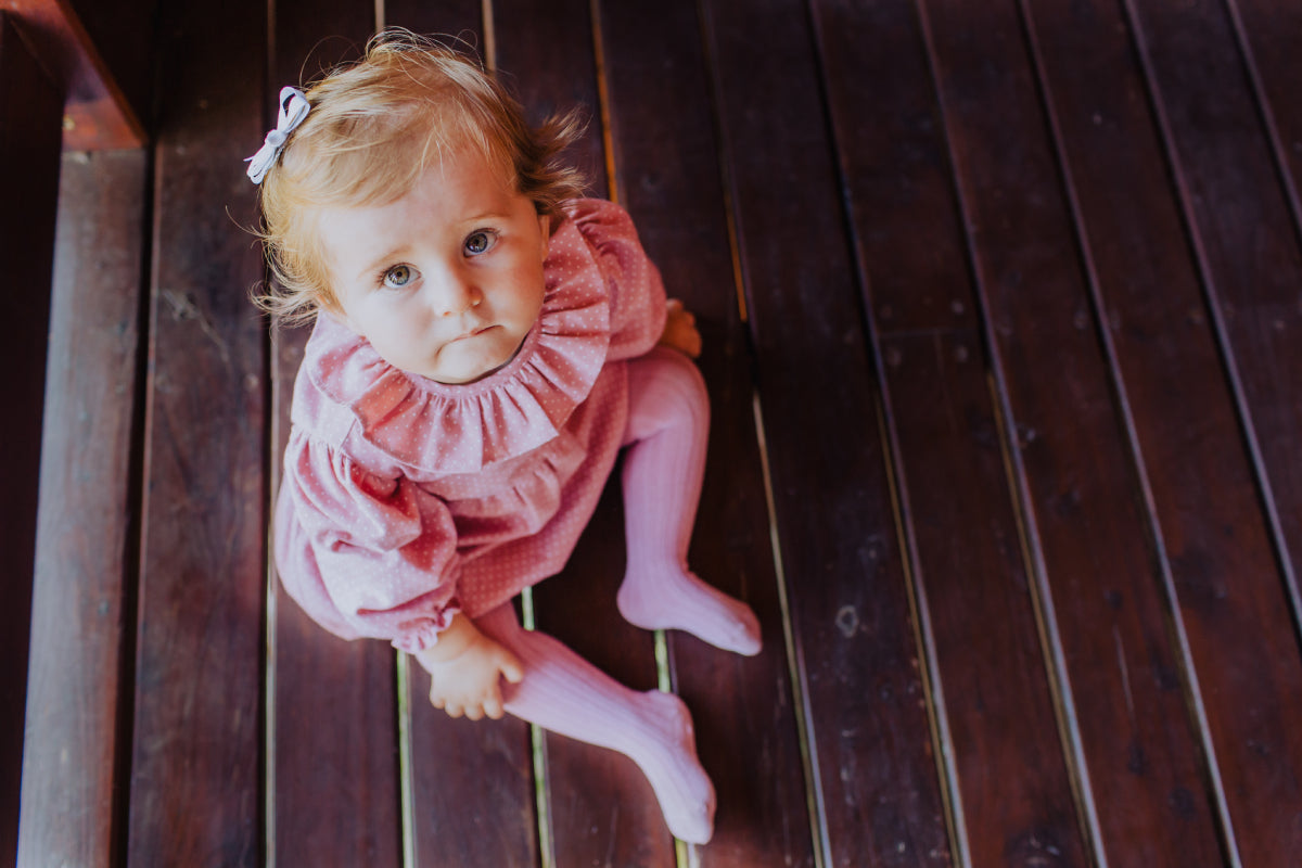Gorgeous dusty pink ribbed tights for the winter wardrobe of your little girl. An essential to style with any outfit from pretty dresses to stylish shorts.