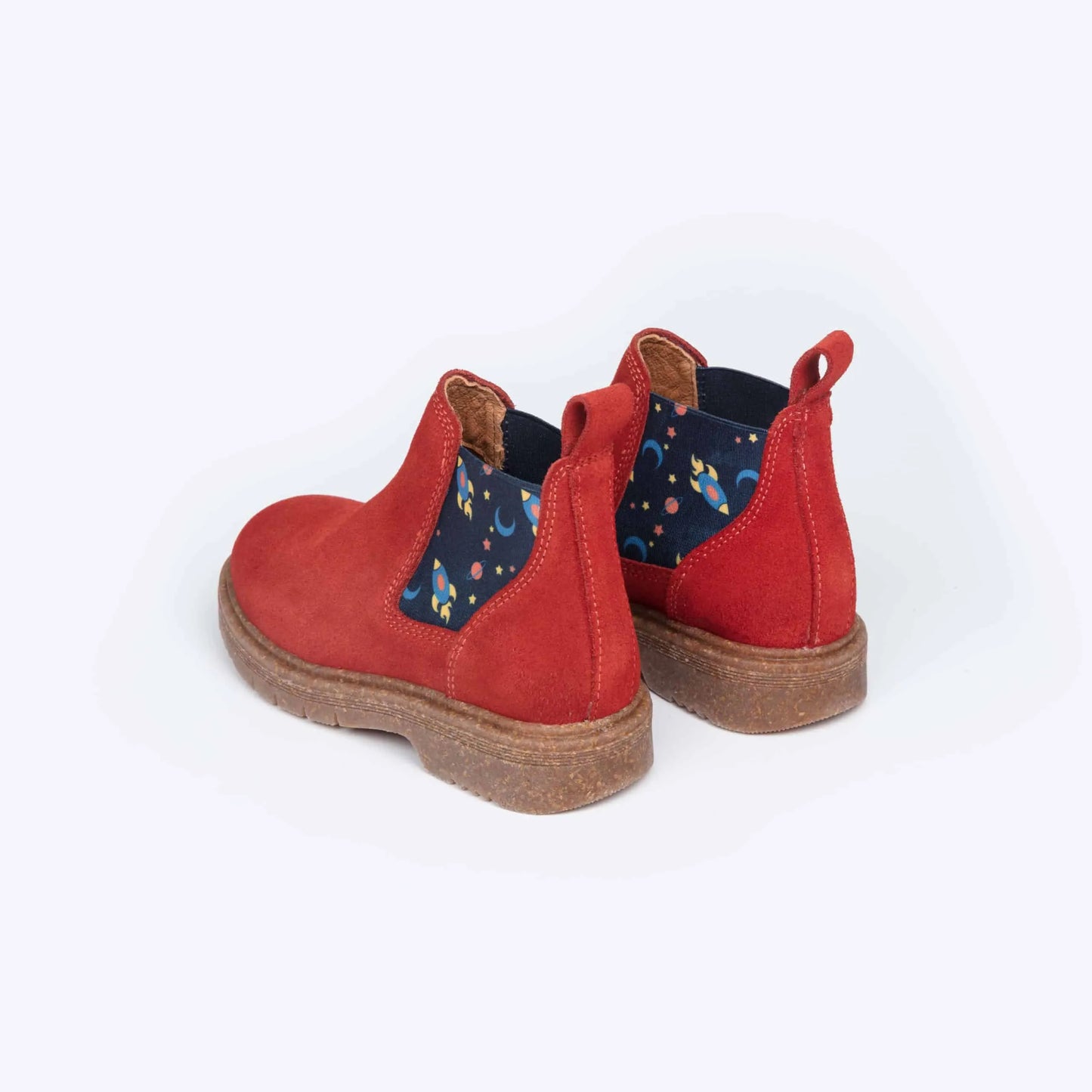 Calling all space lovers! Our eco-friendly kid's Chelsea boots are available in our signature space print. Made from sustainably sourced suedes, these striking red boots will be the statement piece of any outfit. Durable, comfortable, and water-resistant, these Chelsea boots are an outdoor favourite.