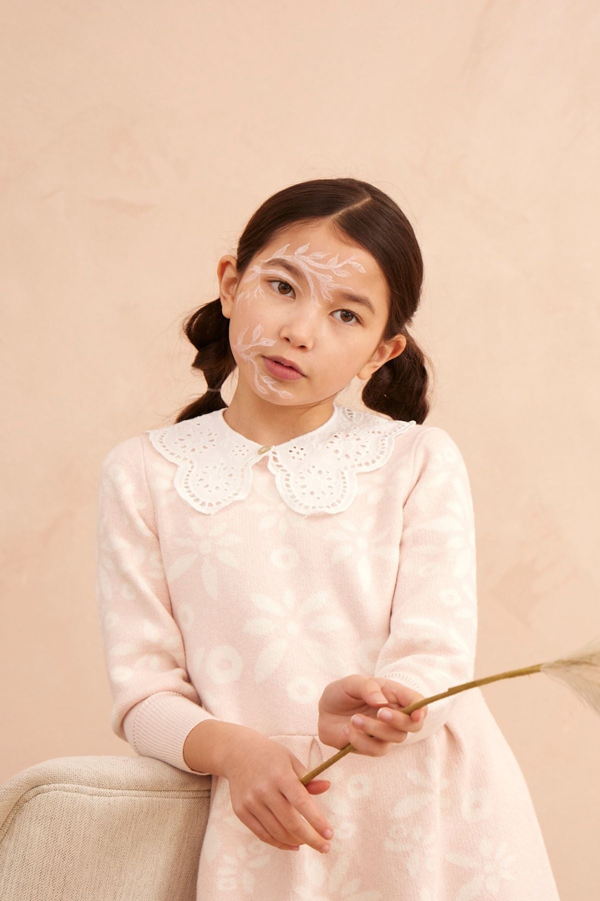 Delicate Snowflake Blossoms: Pretty snowflake-shaped flowers are scattered across the dress, brought to life with precise jacquard knitting for crisp, lasting detail.