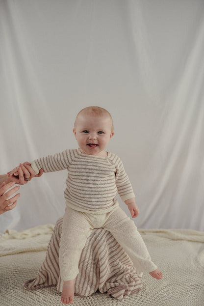 A mindful choice for conscious families, this striped baby jumper makes a thoughtful, sustainable gift or a staple piece in a natural baby capsule wardrobe.