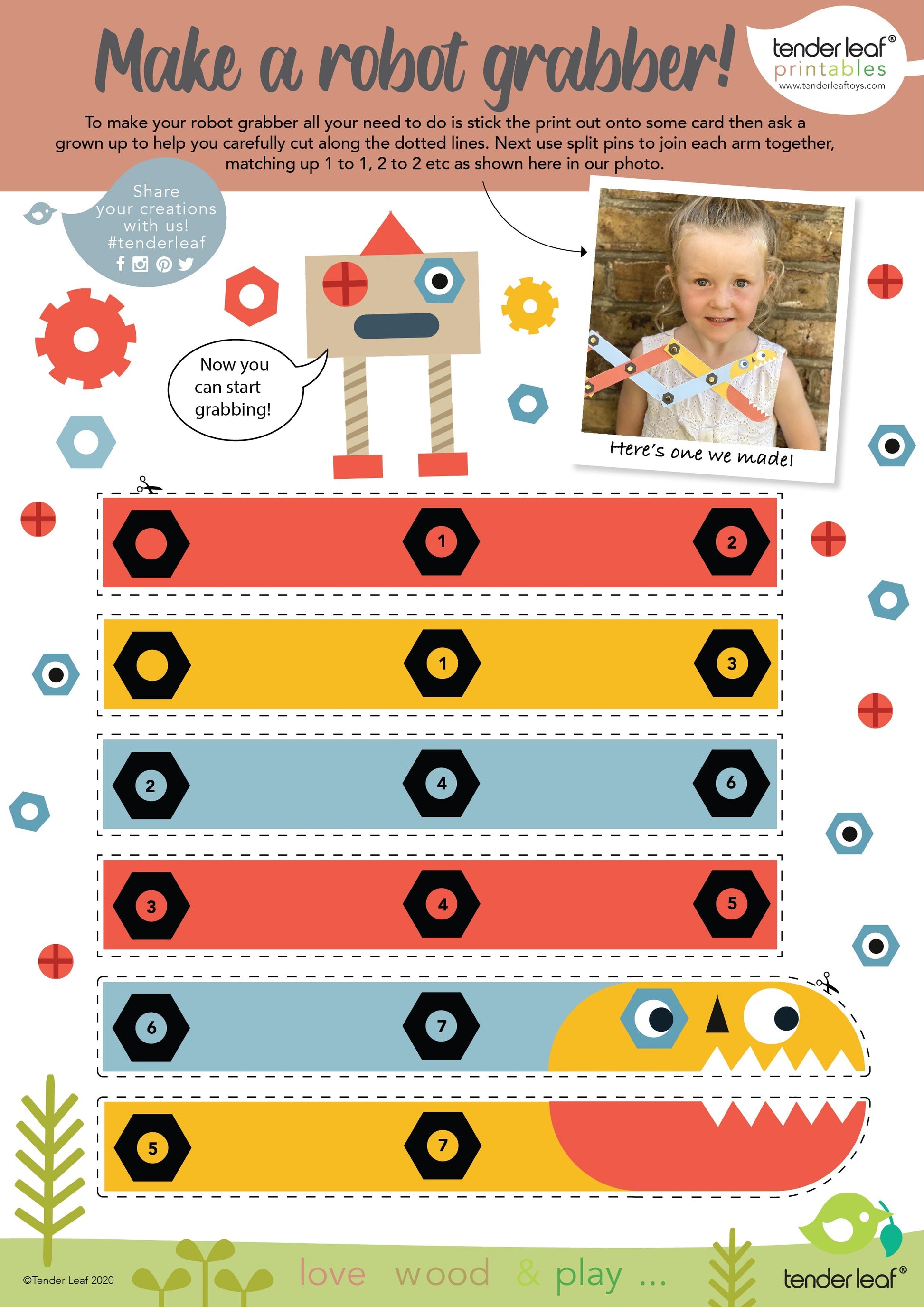 WOW! Here is a cool crafty printable to construct your own robot grabber!